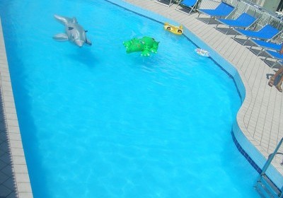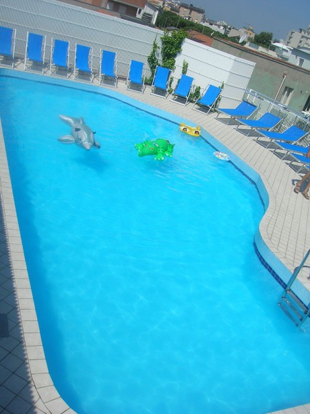 Sull'ampio solarium a bordo piscina attrezzato di lettini, sdrai e docce con acqua calda.